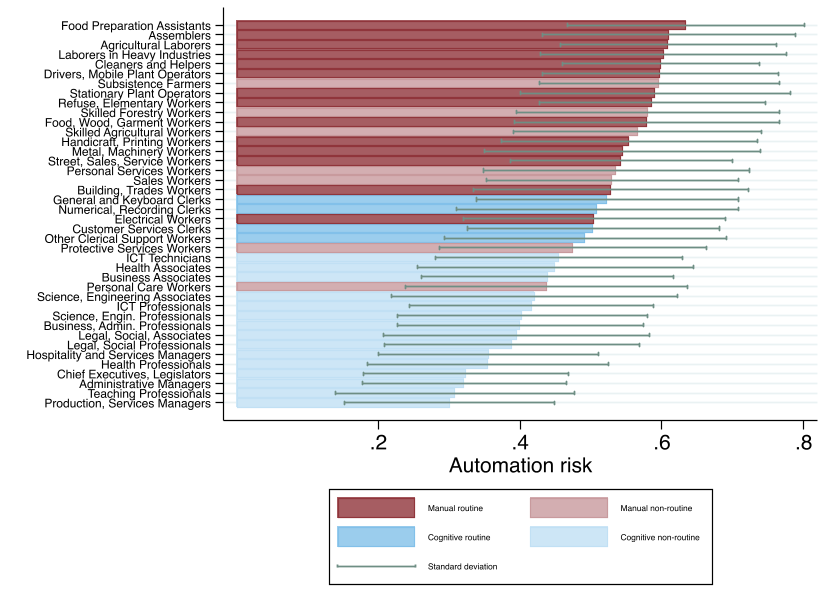 Job training is widely regarded as crucial for protecting workers from automation, yet there is a lack of empirical evidence to support this belief. Using internationally harmonized data from over 90,000 workers across 37 industrialized countries, we construct an individual-level measure of automation risk based on tasks performed at work. Our analysis reveals substantial within-occupation variation in automation risk, overlooked by existing occupation-level measures. To assess whether job training mitigates automation risk, we exploit within-occupation and within-industry variation. Additionally, we employ entropy balancing to re-weight workers without job training based on a rich set of background characteristics, including tested numeracy skills as a proxy for unobserved ability. We find that job training reduces workers’ automation risk by 4.7 percentage points, equivalent to 10 percent of the average automation risk. The training-induced reduction in automation risk accounts for one-fifth of the wage returns to job training. Job training is effective in reducing automation risk and increasing wages across nearly all countries, underscoring the external validity of our findings. Women tend to benefit more from training than men, with the advantage becoming particularly pronounced at older ages.